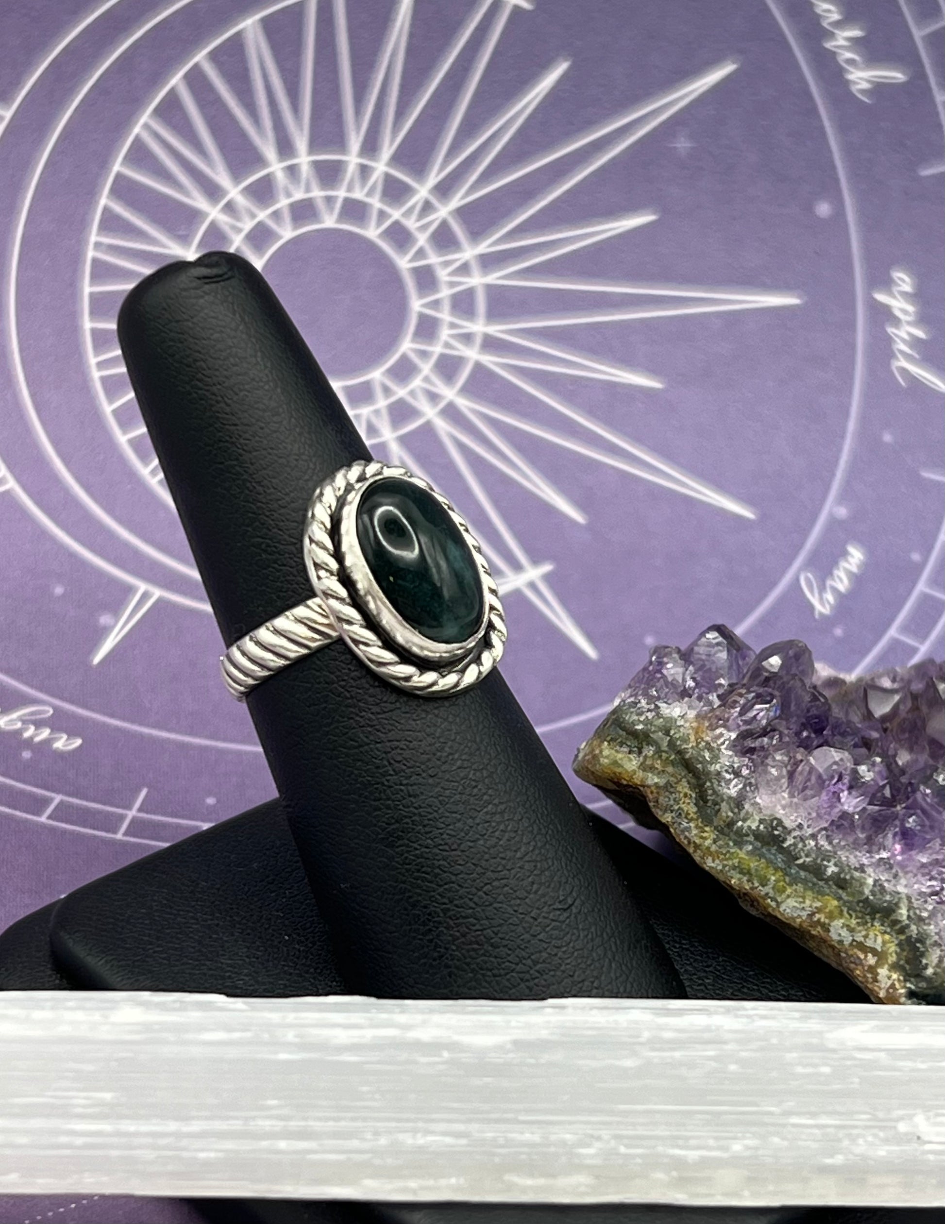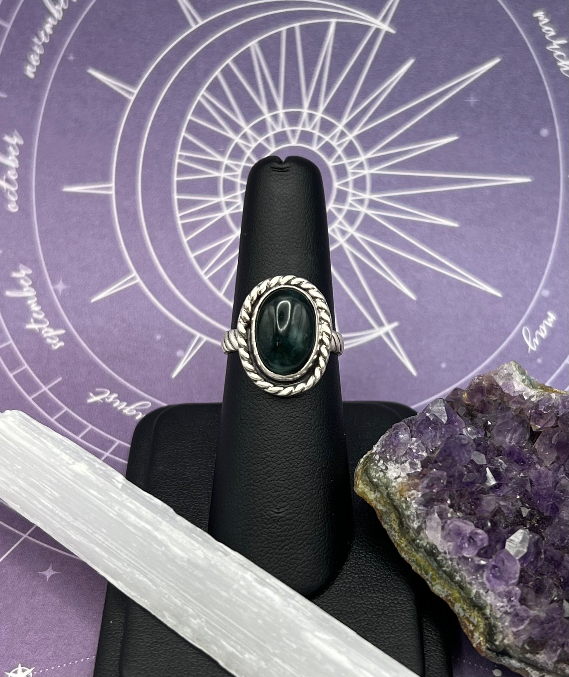 Moss Agate Sterling Silver Ring Size 6.5